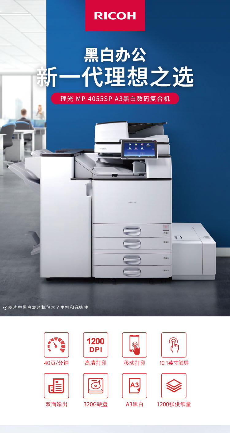 理光(Ricoh)MP 4055SP A3黑白数码复合机 标配+输稿器(免费上门安装+免费上门售后)